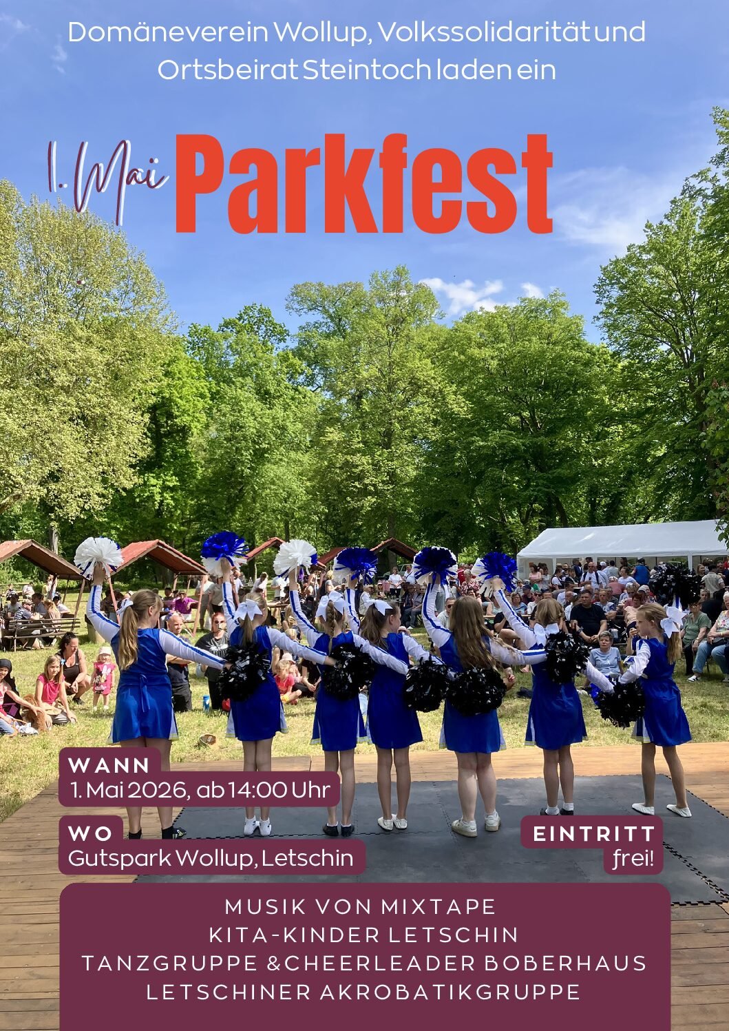 Datum Freitag, 01 Mai 2026 Uhrzeit 14:00 Labels Startseite Parkfest (Maifeier) im Ortsteil Steintoch Weiterlesen: Plakat – Parkfest im Ortsteil Steintoch 00 Tage 00 Stunden 00 Minuten 00 Sekunden