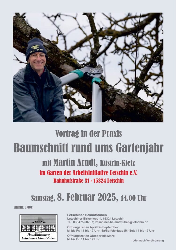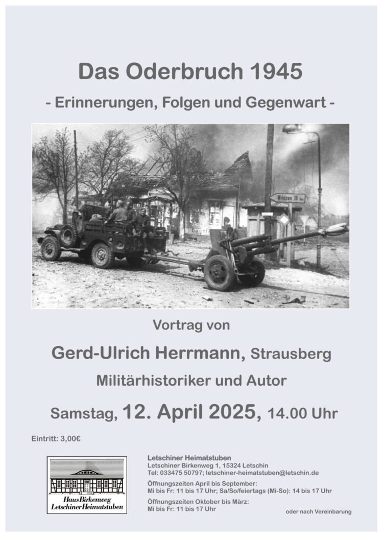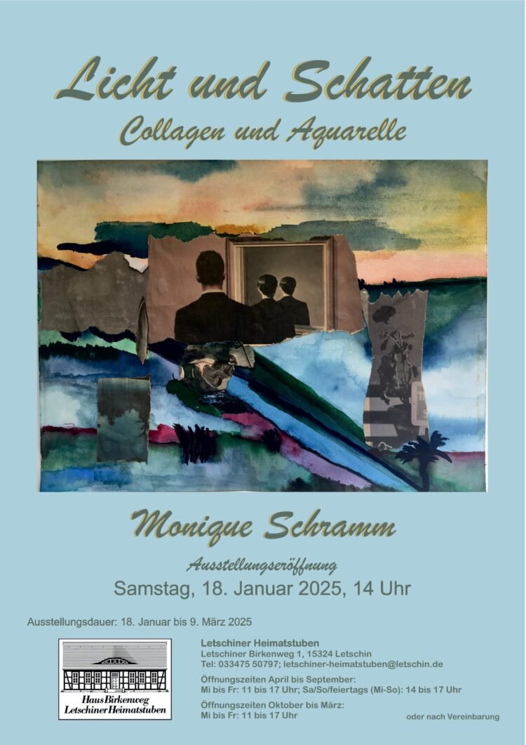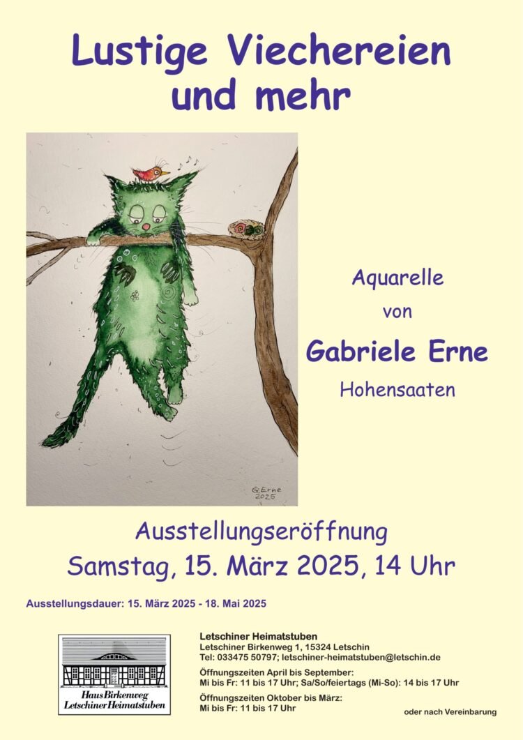 Am 24. Mai ist Ausstellungseröffnung mit dem Thema „Querbeet – Malerei“ in den Letschiner Heimatstuben. Es werden Aquarelle von Sigrid Gutt aus Strausberg vorgestellt. Die Ausstellung ist bis zum 13. Juli 2025 zu besichtigen. Weiterlesen: Plakat – Ausstellungseröffnung „Querbeet – Malerei“ Weiterlesen: Jahresprogramm 2025 der Letschiner Heimatstuben